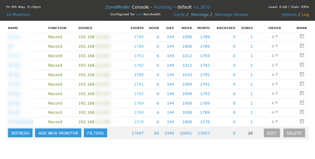 カメラ台数によるZoneMinder(というかブラウザ&webサーバ)の制限
